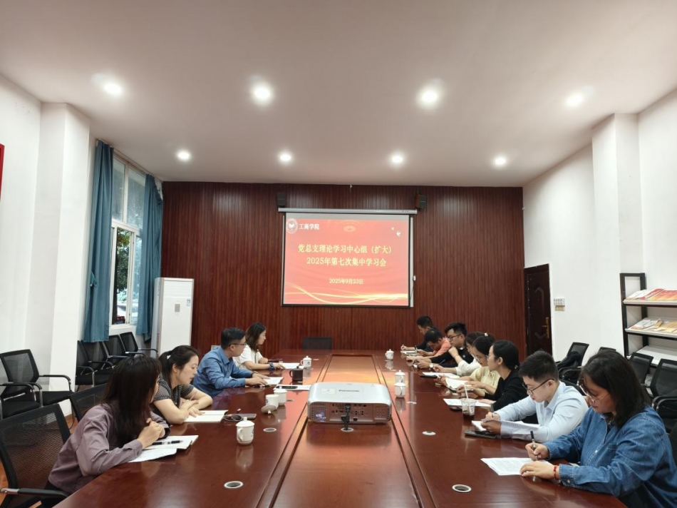 9月30日上午9:30,工商学院在海丰楼11106党员活动室召开党总支理论学习中心组(扩大)2025年第七次集中学习会。会议由党总支书记黄代蓥主持,全体党总支委员及各党支部书记参加,学校党委委员、宣传部部长刘影,宣传科科长谢茜列席旁听。